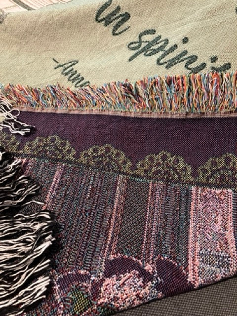 I love everything about this blanket, it is thick and yet lightweight, has such cool textures and patterns with the weave- and the book quote addition is a plus!